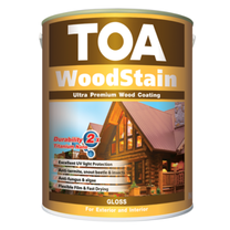 WOODSTAIN GLOSS TOA WOODSTAIN is a specially formulated Urethane Alkyd base high gloss enamel finish for protection of wooden surface. It has good water resistance, UV protection, anti fungus. It is fast dry and recoatable easily.